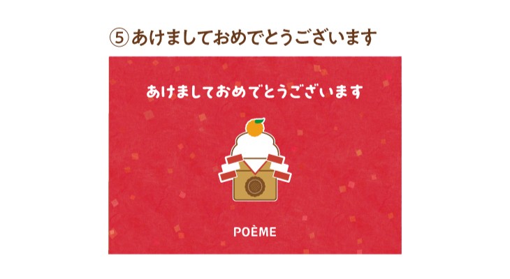 オンラインショップお取り扱い商品をご購入いただくと、 限定メッセージカードを付けられます♪ 大切な方に、母恵夢のお菓子と一緒に感謝の気持ちを贈りませんか。 お正月限定メッセージカードも是非ご利用ください! <概要> ■メッセージカード対象商品: オンラインショップお取り扱い全商品 ■メッセージカードサイズ: はがきサイズ ■価格: 無料 ■ご利用方法: オンラインショップでご購入時、備考欄に①~⑥の番号と枚数をご記入ください。 ■注意事項: メッセージカードは商品個数分までしかお付けできません。 メッセージカードの枚数が分からない場合は、ご連絡させていただく場合がございます。
