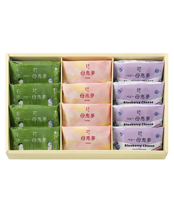ベビー母恵夢:4個 ベビー母恵夢宇治抹茶 :4個 ベビー母恵夢ブルーベリーチーズ:4個