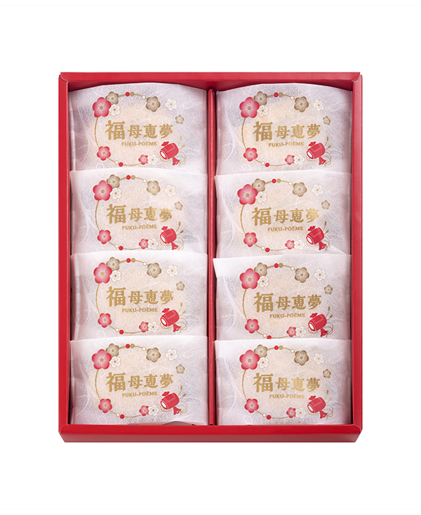 新年を祝うお菓子「福母恵夢」で年末年始のご挨拶に「福母恵夢」は皆さまが新しい年を幸せに過ごせますよう、お菓子の神様(菓祖)「田道間守命(たじまもりのみこと)」が祀られている「中嶋神社」でご祈祷していただいております。年末年始のご挨拶に、福を呼ぶ母恵夢はぜひいかがでしょうか。