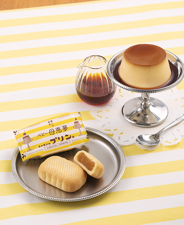ベビー母恵夢 キャラメルプリン味国産の小麦を使った生地で、マダガスカル産バニラビーンズのペーストとキャラメルを使った餡を包み、風味豊かに仕上げました。 プリンをイメージした口どけなめらかなベビー母恵夢です。