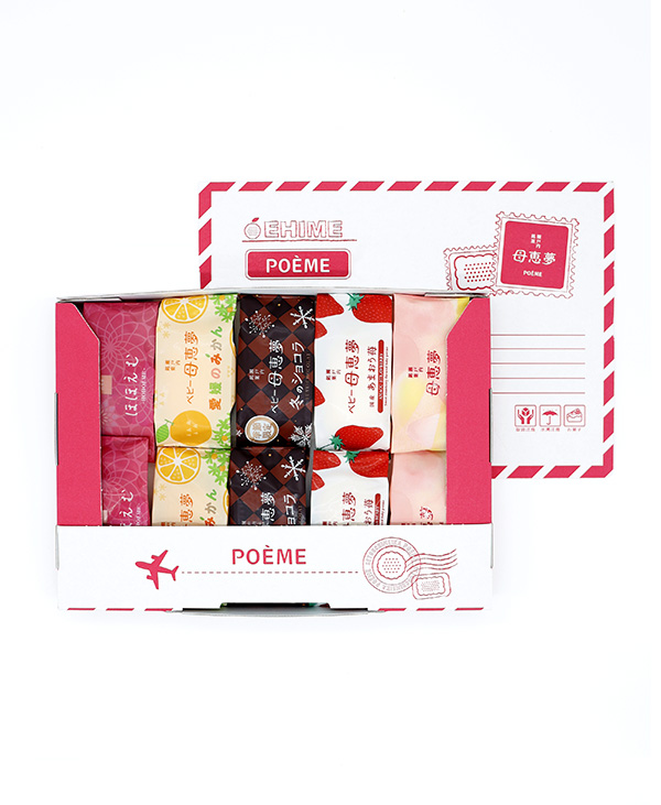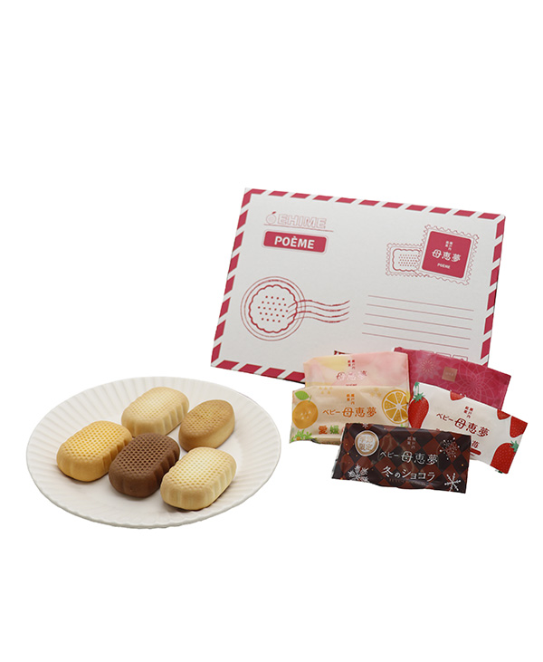 ほんのりバニラが香るおまんじゅうを、召し上がりやすい大きさで。ベビー母恵夢 愛媛のみかん温暖な風土に育まれたベビー母恵夢と温州みかんがひとつのお菓子になりました。 さわやかな風味が広がる、愛媛ならではのベビー母恵夢です。